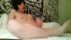 Este jovem sopra sua enorme carga na cama, pois se sente tão excitado que não consegue mais segurá-la e teve que atirar