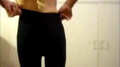Jovem garota com um grande galo se esfrega na webcam