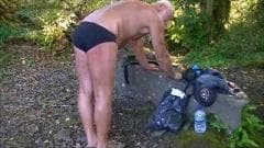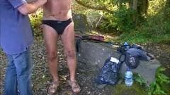 Neste vídeo, vemos como um velho gosta e fica excitado ao receber a surra de seu amante ao ar livre.