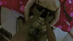 Essa transexual loira é fodida por um negro cheio de tesão, que filma tudo com uma câmera na cabeça.
