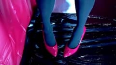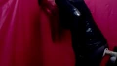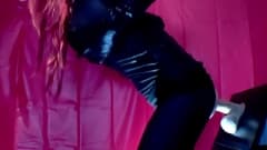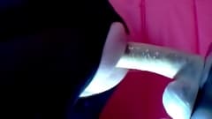 Trans arquea-se para frente para meter um grande vibrador até o fundo!