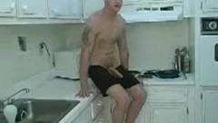 O cozinheiro Stevens está se divertindo muito na cozinha hoje, enquanto agarra seu pau duro e goza também