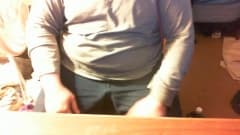 O gordinho tira seu pênis para fora e o esfrega na frente de seus fãs