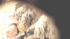 Esse cara está espionando sob as portas de um vestiário. Ele quer ver muito mais dessas mulheres sem que elas saibam.