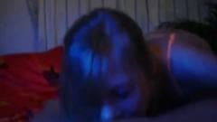 Essa loira adora agradar o namorado chupando o pau dele e não tira o sutiã enquanto está sentado no pau para penetrar muito bem.
