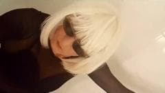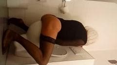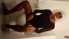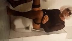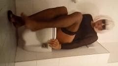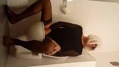 Esta mulher loira com um pau vai se masturbar no banheiro público e gravá-lo com a câmera móvel. Que cena mais legal!