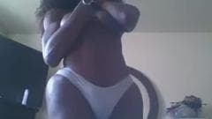 Essa linda negra cuzuda e peituda tem também um belo pau entre as pernas! Um travesti incrível que vai se exibir para a câmera e bater uma punheta gostosa!