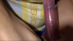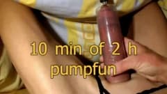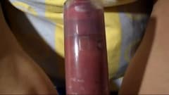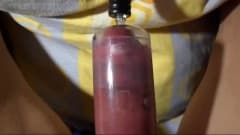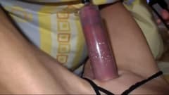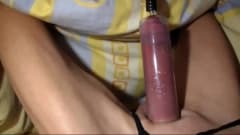 Ele puxa seu pênis para deixá-lo duro e se masturba com uma ventosa
