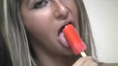 Esse cachorro é muito quente, então na cozinha ela fica excitada com a ajuda de alguns picolés de sorvete. Uma sessão quente que fica muito boa