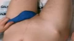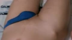 Esse cara quer ter o mínimo de linhas de bronzeado, então ele veste sua calça minúscula e puxa seu pênis para se masturbar