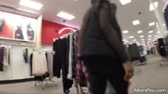 Essa mulher negra foi às compras e, como não tem dinheiro para pagar, decide pagar por outros meios: um bom boquete para o gerente no provador.