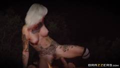 Em uma noite fria, essa loira tatuada vai precisar de muito fogo para aquecer sua boceta. Olha como esse cara a aquece