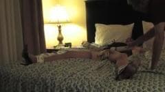 Este travesti está amarrada na cama e está sendo atormentado pelo seu homem! Ela usa sapatos sexys e adora estar vulnerável para aproveitar ao máximo!