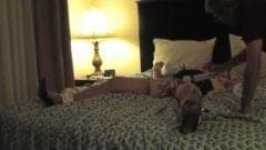 Um travesti, com sapatos sexys, amarrado e submisso, sofre na cama!