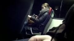 Essa garota parece que não vê esse cara se masturbando no ônibus, mas ele com certeza gosta e é curioso. É um bom momento!