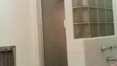 Há uma câmera neste banheiro, onde você pode ver o momento em que essa mulher se banha. Vamos vê-la sair nua e gostaremos dela.