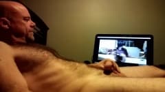 Este homem maduro e peludo é meu papai. Ele se masturba toda noite quando assiste a filmes pornográficos e, aparentemente, seu pau fica muito quente.