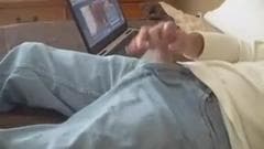Essa loira madura surpreende seu homem assistindo vídeo pornô e se masturbando na frente do laptop, então ela oferece seu corpo para foder à vontade!