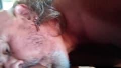 Maduros em casa transando com prazer, ela come o pau dele e masturba em seus peitos grandes. voce vai adorar assistir