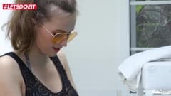 Stacy Cruz é uma bela jovem que veio de uma longa viagem e terá que ficar na casa deste homem safado que a pega na piscina bem forte e excitante.