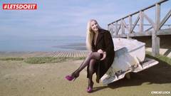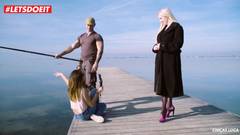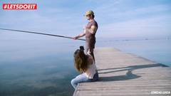 Uma super gata usando lingerie aborda um jovem casal começa a seduzir o cara. Não é preciso muito para acabar chupando o pau dele em frente à namorada
