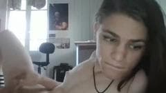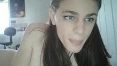 Esta doce jovem travesti é muito flexível e consegue colocar seu próprio pau na boca. Ela gosta de provar o que sai disso!