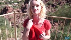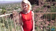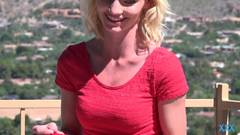 Ele pega essa loira adorável, que mal pode esperar para foder. O cara a leva para um lugar privado, ensolarado, para que ela possa desfrutar da sua piroca.