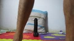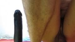 Aqui, novamente, abro minhas pernas, colocando um vibrador preto em mim, enfiando um vibrador muito longo e grosso,