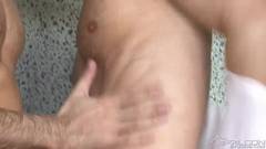 Ludovic Canot e Landon Conrad têm uma cena quente de sucção enquanto desfrutam de um banho juntos e ejaculam juntos