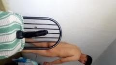 Abra as pernas e sozinha no meu quarto colocando um vibrador grande e grosso na minha bunda, veja como a bunda fica depois de colocar esse vibrador
