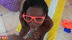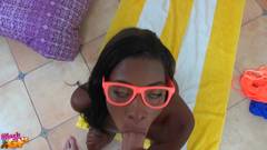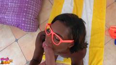 Ela estava fazendo ioga quando seu namorado entrou e imediatamente começou a tirar a roupa e se ajoelhou para chupar seu pênis branco.