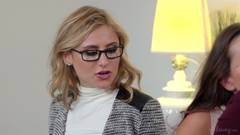Basta três garotas para uma relaxação lésbica quente no escritório