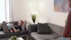 Essa mulher negra pega esse homem branco se masturbando e seu desejo sexual entra em ação, então ela vai comer esse pau de qualquer jeito!
