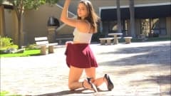 Essa linda mulher se chama Brooke e hoje ela é muito gostosa, por isso decide se masturbar ao ar livre e colocar suas roupas íntimas em sua vagina.
