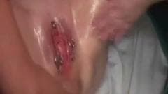 Essa velha vagabunda tem piercings nos mamilos e vários na buceta e adora quando seus parceiros enfiam as mãos fechadas na buceta e no cu em simultâneo!