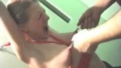 Essa loira adora sentir dor e dessa forma atinge o clímax. O cara prende e puxa seus mamilos, chicoteia e dá palmadas e derrama cera quente por seu corpo!