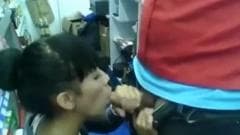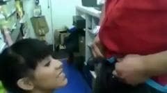 Moreninha safada dando boquete atrás do balcão da loja