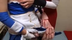 Dois asiáticos em fantasias de cosplay e se masturbando delicioso