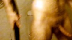 No banheiro, conseguimos descobrir um gay amador. Um homem que obviamente tem a bunda aberta porque o dildo entra inteiro