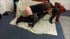 Vestido em couro, salto alto e peruca, esse casal gay se diverte sodomizando um ao outro até gozar como dois loucos selvagens. Divirta-se com eles.