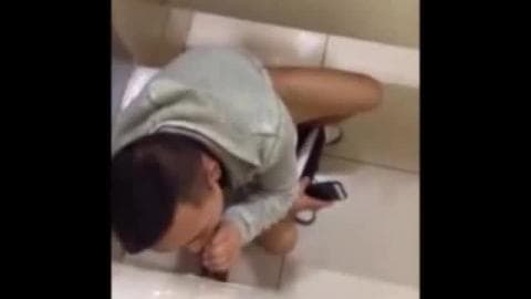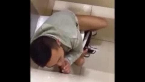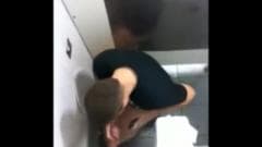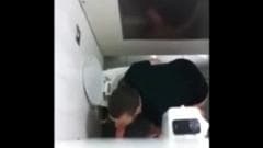 Esses amadores estão se divertindo muito chupando pau no banheiro público porque isso os deixa com muito tesão.