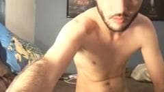 Este belo jovem gay se masturba na frente da câmera enquanto assiste pornô no seu celular. Fica muito quente, tanto que acaba gozando.