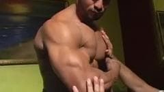 Este fisiculturista muito musculoso tem um corpo lindo e perfeito e tudo o que ele quer fazer é mostrá-lo para a câmera enquanto o masturbam. Que rico!