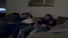 Três jovens gays esperam para se foder no sofá para sentir o maior prazer possível juntos. Não pode perder esta cena