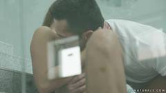 Amirah usa seus pés sensuais para bater uma punheta fetichista no namorado, deixando-o com muito tesão, e depois faz um boquete muito bom.