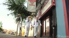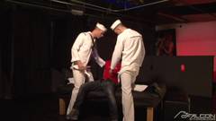 Esses dois marinheiros estão na cidade e querem se divertir. O balconista lhes faz um boquete e essa safadeza se transforma numa foda de três vias.