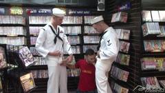 Dois marinheiros fodem o balconista em uma sex shop