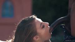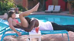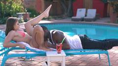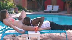 Ela abre as pernas para que o namorado negro lamba essa doce buceta rosa ao lado da piscina, fazendo-a se sentir tão bem e ela quer o pau dele penetrando-a.