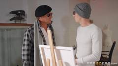 A nova pintora não resiste à beleza da loira Elizabeth Romanova e perde a concentração. Sela vai foder na frente dos outros alunos.