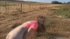 Ela sai de um carro e vai para o lado da estrada para se masturbar ao ar livre com um vibrador enorme sem se importar que as pessoas a vejam gostando.